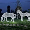 在幽靜的夜晚,一座鐵藝發(fā)光馬雕塑靜靜矗立在花園的中央。它的身形栩栩如生,仿佛剛剛從夢中跑出,奔向星空的深處。雕塑的每一個(gè)細(xì)節(jié)都經(jīng)過精心雕琢,散發(fā)著金屬的冷艷光澤,猶如夜空中璀璨的星星,令人陶醉。當(dāng)夜幕降臨,周圍的一切都陷入了寧靜與黑暗之中,這座馬雕塑閃爍著迷人的光芒。淡淡的光線從馬的體內(nèi)透出,猶如晨曦初露的溫暖,溫柔地灑在周圍的草地上,仿佛在為大地披上一層柔和的銀紗。這種獨(dú)特的設(shè)計(jì),不僅賦予了雕塑生命,更讓人感受到一種靜謐而神秘的氛圍。