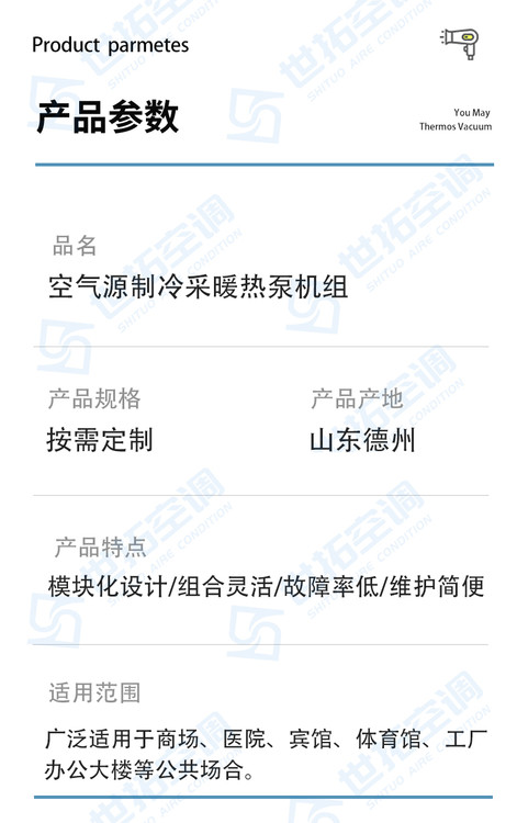 商場(chǎng) / 購(gòu)物中心:大型商場(chǎng)空間開(kāi)闊、人流密集,散熱負(fù)荷大,機(jī)組可通過(guò)多模塊組合提供充足制冷量;冬季則可切換制熱模式,配合空調(diào)末端營(yíng)造舒適購(gòu)物環(huán)境,同時(shí)無(wú)需單建設(shè)機(jī)房,可安裝在屋頂或室外廣場(chǎng),節(jié)省室內(nèi)商業(yè)面積。