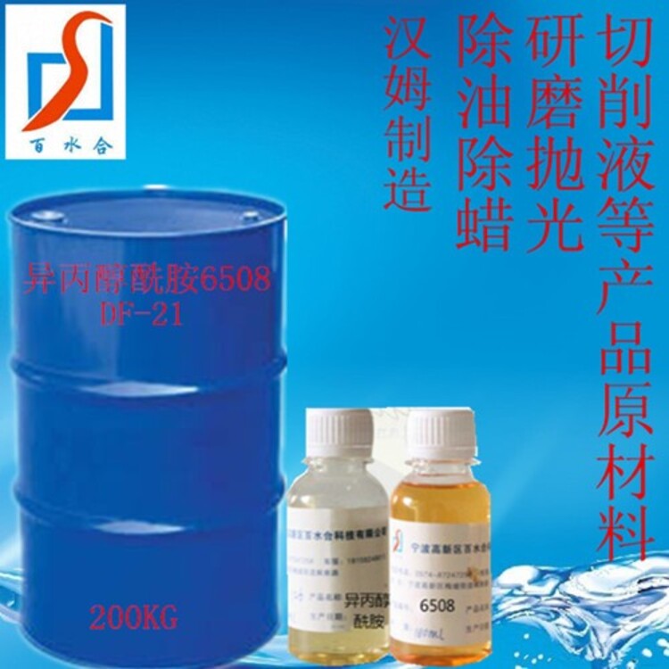 Isomeric alcohol amide 6508 isomeric alcohol amide 6508 is easy to dissolve in water, excellent permeability, emulsifying (strong hydrophilic group) and thickening, and has a good dispersion effect on carbon black, soot and other particles in oil and fat! Therefore, it has excellent cleaning effect on heavy oil stain, polishing wax, wax stain, etc. . Recommended advantages: LOW VOC, low water environmental damage, no phosphorus, do not produce damaging ions, etc. , daily Chemical Grade Standard Parameter Index: Appearance: Pale yellow/yellow transparent viscous liquid (20 °C) Ph: (1% aqueous solution)8-9.5 active matter content (%)99 ± 0.5 hlb value: 13.5 cloud point (high) : 100 °C foam grade: medium packing and storage: 1,200 kg plastic or iron drums 2, storage and transportation by General Chemicals. Store in a dry and ventilated place. Store in a sealed place for 12 MONTHS