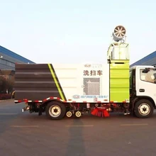 5、吸嘴內(nèi)高有桿,盡可能多地將高壓洗滌噴嘴布置在吸嘴內(nèi)部,不但清洗效果好,還能限度高壓水氣流沖起污物產(chǎn)生的二次污染道路洗掃目前己擁有專利23項(xiàng),其中多項(xiàng)填補(bǔ)國(guó)內(nèi)外工藝技術(shù)空白.達(dá)到進(jìn)步前輩水平。 掃盤通過(guò)液壓達(dá)到升降和向外伸展的功能,由液壓馬達(dá)驅(qū)動(dòng)形成高速轉(zhuǎn)動(dòng),把垃圾由外向內(nèi)掃向車底,再有垃圾擋板垃圾外泄,由后置吸嘴吸到垃圾箱內(nèi)存放,掃盤上方裝有環(huán)形架,由電動(dòng)隔膜泵產(chǎn)生水霧,在清掃時(shí)進(jìn)行噴霧降塵。