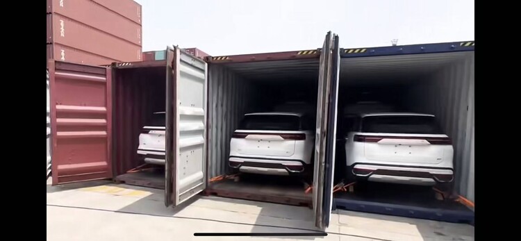 下面分別展示車(chē)輛裝箱的側(cè)視圖以及實(shí)際裝箱圖: