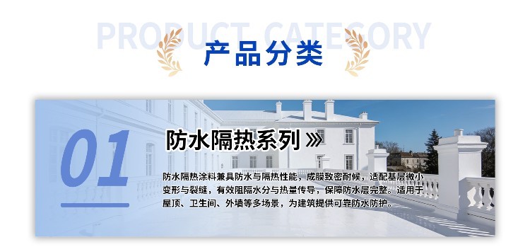 涂膜干膜密度≤1.2g/cm3,厚度1.5-2.0mm時(shí)自重僅2-3kg/㎡,僅為瓷磚鋪貼重量的1/5,特別適用于輕鋼別墅、裝配式建筑等對(duì)荷載敏感的場(chǎng)景。 5. 耐候,壽命持久