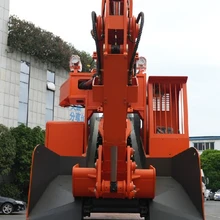 鑫通礦用混凝土噴射車械手由回轉(zhuǎn)座、伸縮臂、噴頭組成,能實現(xiàn)臂架回轉(zhuǎn)、臂架伸縮、臂架俯仰、噴頭回轉(zhuǎn)、噴嘴擺動、噴嘴刷動等六個動作,采用電液比例控制,操作靈活。