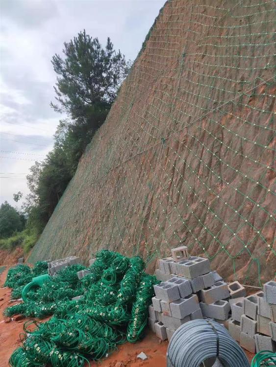 1、邊坡防護網(wǎng)可以在固定的錨索張力等條件下,在斜坡上噴灑薄土泥草種子;