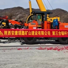 福建某鉬礦,斷面2.8X2.8米,采用鑫通機(jī)械液壓中深孔采礦臺(tái)車配備沃思德鑿巖機(jī),一個(gè)班可打180米。