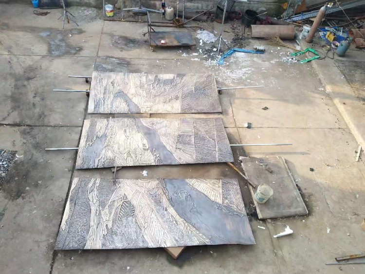 鍛銅雕塑:以銅為主要原料,在雕塑內(nèi)部剛結(jié)構(gòu)制作完成后在其表面覆蓋上純手工根據(jù)相應(yīng)模型敲打出來(lái)的造樣的工藝過(guò)程。