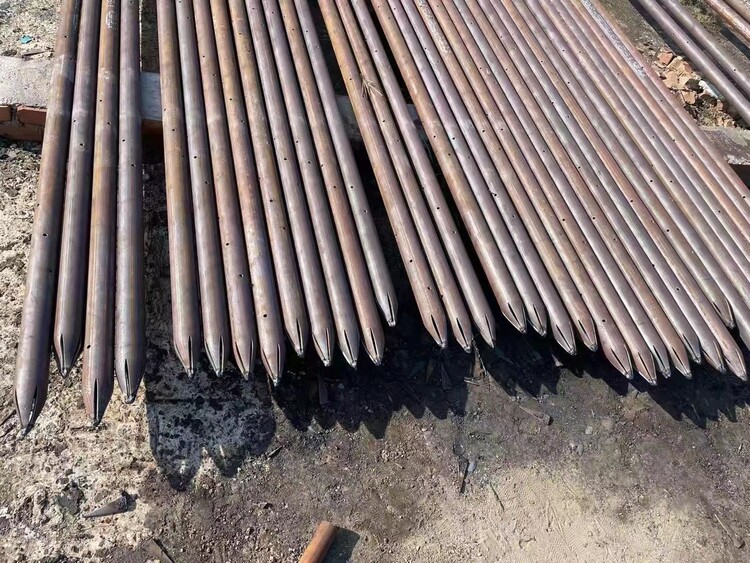 管距離混凝土近邊1m,(當承臺尺寸較厚時,采有多層水管時,每層水管的垂直進出口進行相互錯開1.5m),進、鋼花管施工工藝:a.測放樁位,用鉆機進行鉆孔,并清孔;b.將鋼花管桿體打入孔中,通過壓降接頭把水泥漿壓入鋼花管;c.直至出現壓力急劇上升而灌滿巖孔,迅速堵漿土封口。鋼花管、隧道管棚管、小導管、承臺冷卻管、高速護欄等路橋系列產品。