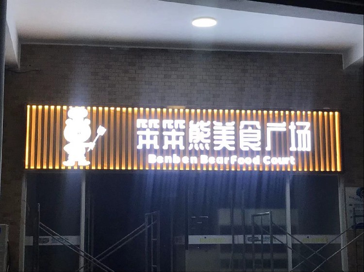 門頭設(shè)計另外要考慮的是店面的展示,也就是“店名”。店名一般會在設(shè)計在店面正上方。常用的材料有,亞克力雕刻字,吸塑字,不銹鋼字等。這些店名的設(shè)計,需要考慮夜晚環(huán)境。