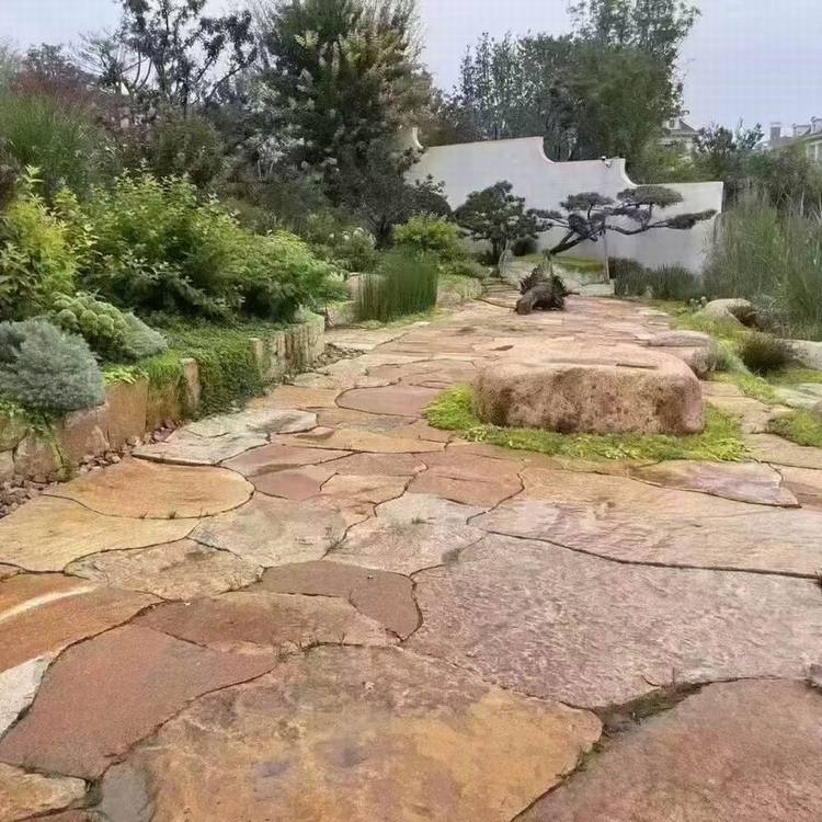 這種石材多由?黃木紋板巖、花崗巖或砂巖?加工而成,表面保留了原始的不規(guī)則形狀與天然肌理,顏色以黃褐色、銹黃色為主,夾雜深淺不一的斑駁紋路,遠看宛如虎皮,因此得名 。它不僅視覺上富有層次感和藝術氣息,還具備良好的?防滑性、耐磨性與耐候性?,適合戶外鋪裝或墻面裝飾,經(jīng)得起風吹日曬而不易褪色 。