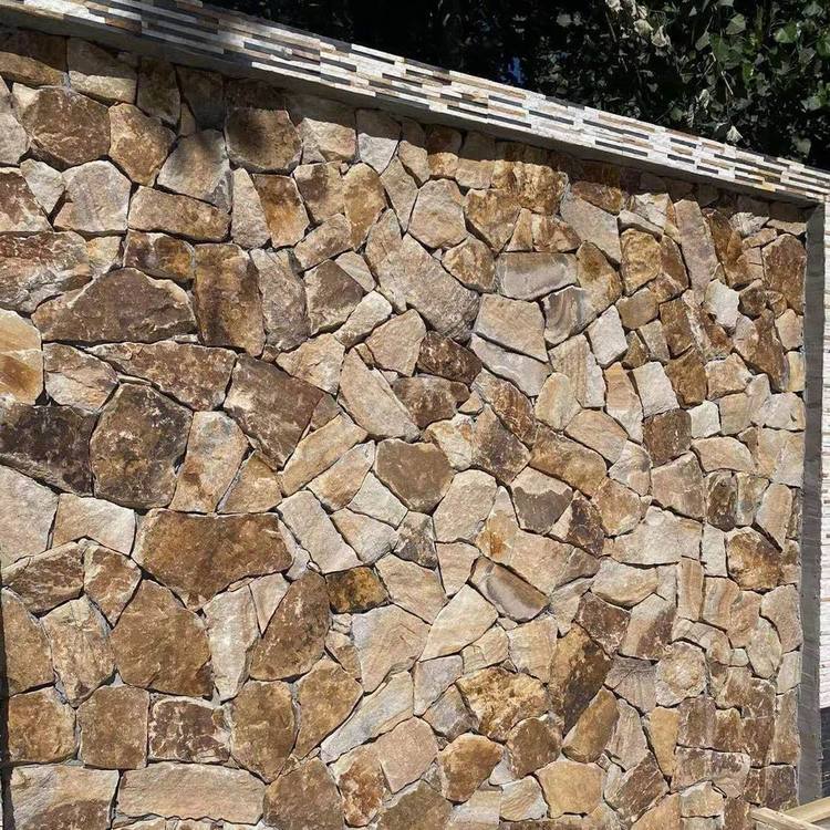 黃色虎皮石碎拼石材 天然薄石片 黃木紋不規(guī)則亂石文化石