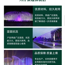 公司產(chǎn)品涵蓋了多種類(lèi)型的噴頭,除二維數(shù)碼噴頭外,還有柱狀噴頭、喇叭噴頭、蒲公英噴頭、直流噴頭、玉柱噴頭等,每種噴頭都有其獨(dú)特的水型效果。柱狀噴頭能?chē)娚涑鐾Π斡辛Φ乃?,直沖云霄,氣勢(shì)磅礴;喇叭噴頭則呈現(xiàn)出扇形水花,如綻放的花朵般優(yōu)雅柔美;蒲公英噴頭制造出細(xì)膩如霧的水珠,營(yíng)造出夢(mèng)幻般的氛圍;直流噴頭可提供穩(wěn)定、直線型的水流,簡(jiǎn)潔大方;玉柱噴頭噴出的粗壯水柱,為噴泉增添厚重感與力量感。這些多樣化的噴頭可根據(jù)項(xiàng)目需求進(jìn)行自由組合,打造出千變?nèi)f化的水型效果,滿足不同場(chǎng)景、不同風(fēng)格的音樂(lè)噴泉設(shè)計(jì)需求,無(wú)論是大型商業(yè)廣場(chǎng)的宏偉噴泉,還是小型園林庭院的水景,都能適配。