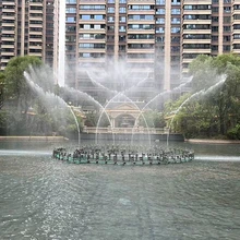 安裝于湖泊、水池等自然水體中,噴泉設(shè)備漂浮于水面。