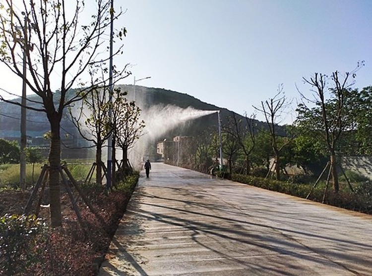 4、安全環(huán)保節(jié)水:以水為主,具有降溫、消毒等作用,對人體無傷害,對環(huán)境無影響,不會在高溫解產(chǎn)生有害物質(zhì),在噴霧的同時,對噴放區(qū)域內(nèi)的人員無任何傷害,用水量是水噴淋的1%,大減少了用水量。
